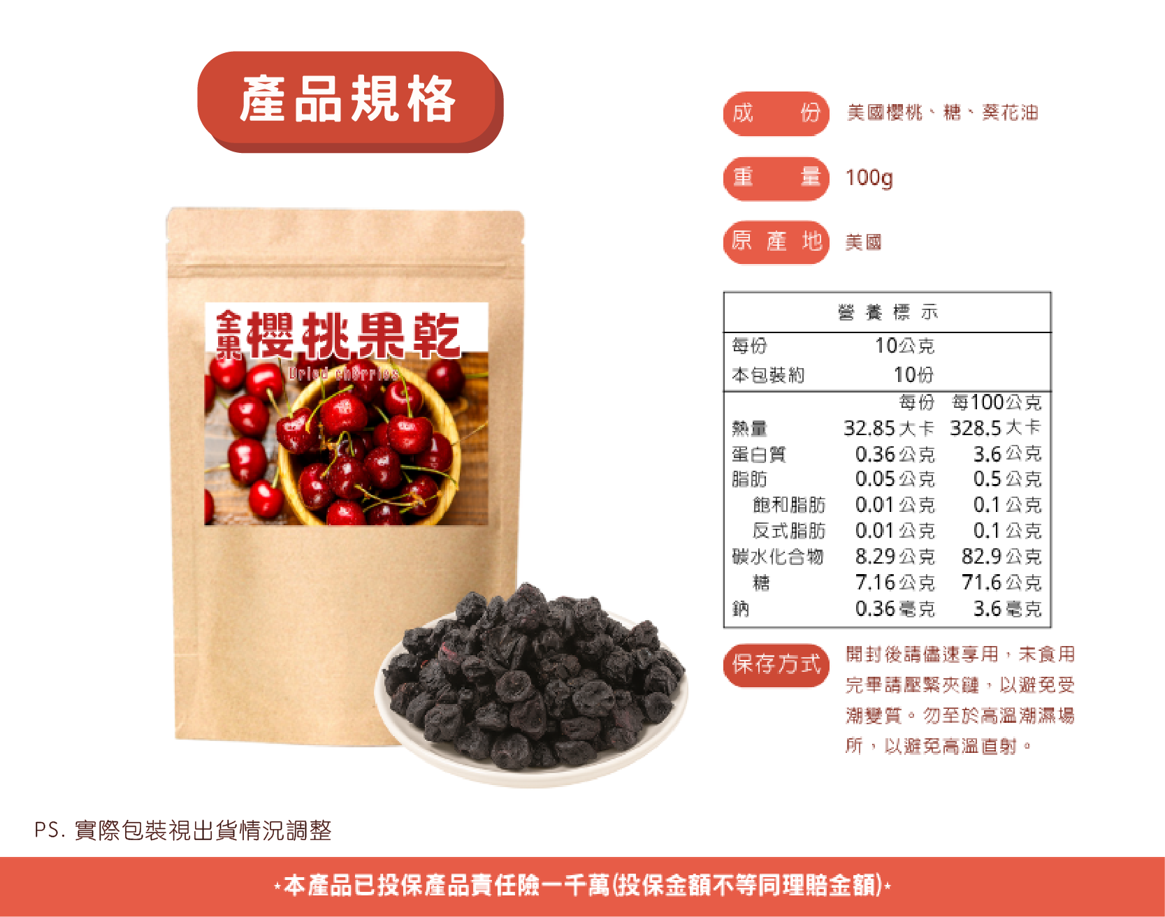 精選新鮮優質櫻桃製成,使用低溫烘烤技術製作,把香甜多汁的櫻桃果肉完整萃取,保留住櫻桃的纖維、香氣。酸甜口感,天然香氣!